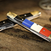 The other knife has four colors on one side: black, blue, white, and red, adding versatility to your routine. It can serve as a captivating finale or be used to force the color black at the beginning, instantly transforming into a completely black knife.