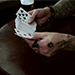 A single deck of cards is sitting on the table. A spectator is asked to name a card; they are then asked to name a number from 1 to 52. The cards are removed at fingertips from the box and handed to the spectator.