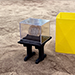 The magician shows a small pedestal surmounted by a transparent case. He removes it and, from the pedestal, takes away and shows a stand with a slit in the center. He puts this stand back on the pedestal and puts the case back in position by blocking the pedestal and case with an elastic band. He covers everything with a rectangular tube and after a moment, he removes it and a coin will have magically appeared in the case, displayed vertically on the stand!